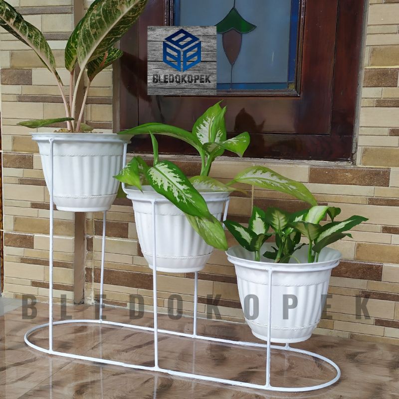 Rak Bunga Susun Standing Pot Tempat Tanaman Besi Minimalis 3in1 Perlengkapan Taman Tatakan Warna Hitam Putih Shopee Indonesia
